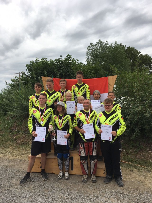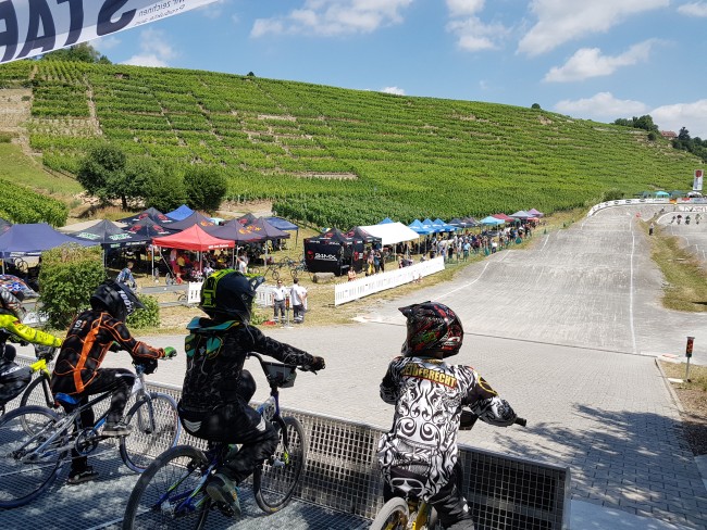 Auf der wunderschön gelegenen Anlage des MSC-Ingersheim, zwischen Weinbergen und dem Neckar, wurden bei ebenso schönem Wetter spannende BMX-Rennen geboten. Herausragend einmal mehr die Leistungen von Fyn Farkas-Janssen und Alexander Podlich, die die Plätze 1 und 2 auf dem Treppchen belegten! Herzlichen Glückwunsch zum Titel Süddeutscher Meister und Hessenmeister, bzw. „Vize“!
