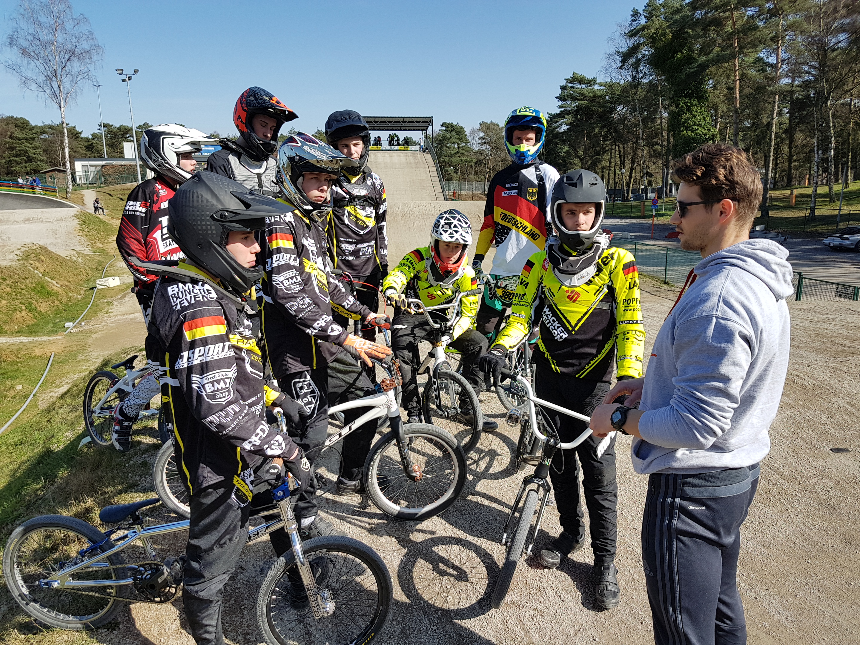 Nur 2 Wochen später ging es schon Freitags ebenfalls nach Belgien, dieses mal jedoch nach Zolder, auf die anspruchsvolle EM und WM-Strecke. Neben freien Trainingseinheiten am Samstag früh ging es dann am Nachmittag in kleineren Gruppen auf die Strecke, um den Start, aber auch einzelne Sektionen zu trainieren. Das Highlight an dem Wochenende war sicherlich das Training mit Raymon v.d. Biezen, amtierender Europameister und jeweils Olympia 4. In London und Rio!