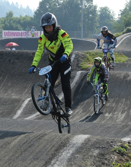 Nach extrem spannenden Rennen wurde Daniel Schlang vom RSC Cottbus in der Elite männlich neuer Deutscher Meister! Knapp hinter ihm kam Olympiateilnehmer Luis Brethauer (TSV-Betzingen) ins Ziel, dritter wurde Jakob Bernhardt (Weilheim). Bei der Eliteklasse der Damen holte sich Favoritin Nadja Pries vom RC 1950 Erlangen den Titel. Sie verwies Juniorin Sandra Pavokovic und Regula Runge (beide Skizunft Kornwestheim) auf die weiteren Plätze. Mit Liam Webster vom RSC Cottbus setzte sich bei den Junioren auch der Favorit durch. Er ließ seinen Konkurrenten keine Chance und gewann Gold vor Philip Schaub (MSC Ingersheim) und Tobias Meyer (Skizunft Markgröningen). Liams Bruder Axel, ebenfalls beim RSC Cottbus, wurde ebenfalls Deutscher Meister. Er gewann in der Jugend U17 vor Stefan Heil (DJK Kolbermoor) und Kay Stindl (Skizunft Kornwestheim). In weiblichen Jugend sicherte sich Leonie Schuster (RC 1950 Erlangen) den Titel vor Luna Stein (Vegesacker BMX-Club) und Julia Muschler (Radhaus Ingolstadt). In der Schüler-Klasse ging Robert Schönmaker (RSC Cottbus) als Sieger hervor. Zweiter wurde Tobias Flemming (MAC Königsbrunn), Rang drei ging an Sebastian Gross (RC 1950 Erlangen). Svenja Poncette (RC 1950 Erlangen) hieß die Siegerin bei den Schülerinnen U15. Sie gewann vor ihrer Vereinskameradin Carina Endlein. Dritte wurde Svea Bergtold (DJK Kolbermoor). Am zweiten Tag der Deutschen BMX-Meisterschaften stand das Time Trial auf dem Programm.