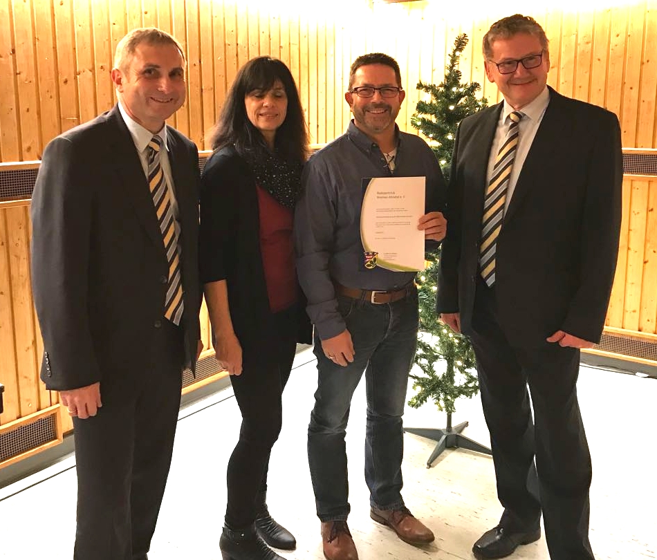 Landrat Uwe Schmidt, Uwe Koch (Verkehr und Sport) und Petra Brand (Sportförderung) überreichten die Urkunde an Carsten Rövenstrunk, Fachwart beim RSC. Insgesamt wurden an die Vereine 70.000,- € verteilt - Der kleinste Förderbeitrag in Höhe von 28,- €, der größte in Höhe von rund 14.000,- €.