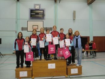 Erste Starterin für den RSC war Pia Lameyer bei den Schülerinnen U11. Beim Einfahren hatte sie keine Schwierigkeiten, im Wettkampf zeigte sich dann, dass einige der neuen Übungen doch noch etwas unsicher waren. Obwohl Pia im Training mit Zeitproblemen zu kämpfen hatte, reichte die Zeit diese Mal aus – in diesem Falle leider, weil sie sich ohne den Sturz am Ende noch um einen Platz hätte verbessern können. Pia wurde mit 30,53 Punkten Fünfte. Celina Schneider zeigte ihre Übungen total sicher und sauber – das musste sie auch, schließlich ging es für sie erstmals um die Qualifikation zur Hessenmeisterschaft. Ein ärgerlicher Sturz beim Umdrehen zu den Kehrübungen konnte ihr dank der guten Ausführung nichts anhaben – mit neuer persönlicher Bestleistung von 42,55 Punkten sicherte sie sich Rang drei und qualifizierte sich zur Hessenmeisterschaft.