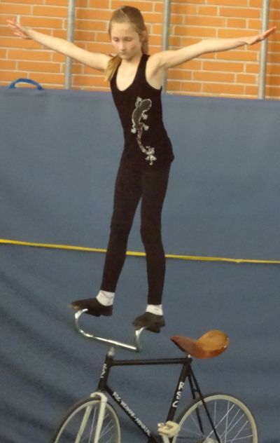Ein blöder Termin, der Bezirkspokal direkt am Tag nach unserem Abschlussfest. Trotz Schlafmangels ließen es sich unsere Kunstradfahrerinnen und –fahrer aber nicht nehmen, mit diesem letzten Wettkampf im Sportjahr die erfolgreiche Saison abzuschließen. Zudem bot der Bezirkspokal in Bergshausen die letzte Gelegenheit, den Boden der nächsten Hessenmeisterschaft zu testen. Und für unsere „Schnupperkinder“ Laila, Elea und Mareike, die gerade erst mit dem Kunstradfahren angefangen haben, war es der allererste Wettkampf, weil die Kinder auch ohne Lizenz antreten durften. Sie traten allesamt in der jüngsten Altersklassen, den Schülerinnen D U13, an.