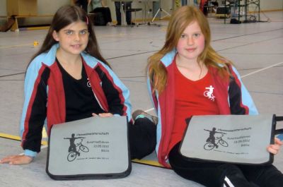 Bild unten: Mit neuen T-Shirts und chicen Taschen: Nina und Hanna nach der Siegerehrung