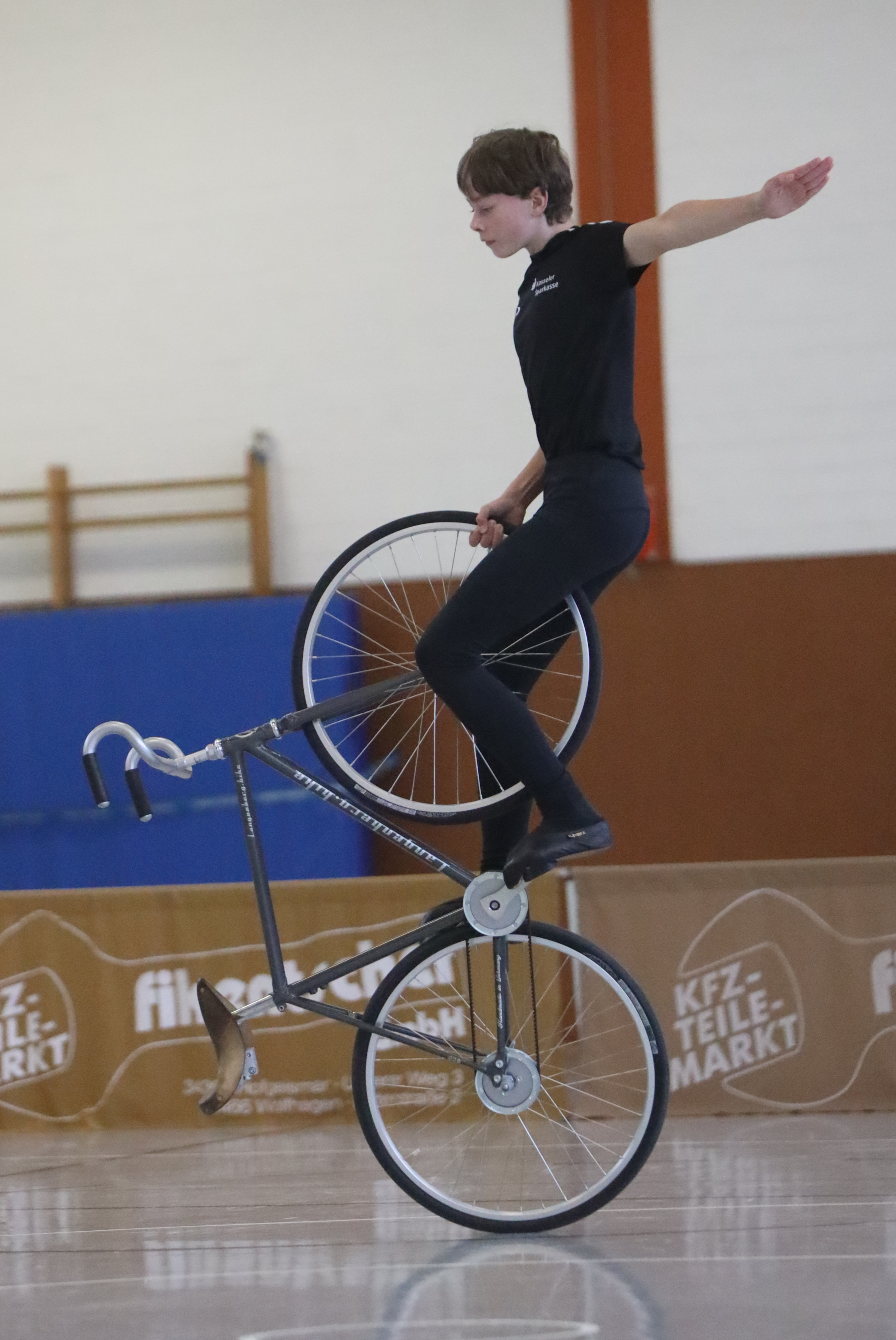 Ilian Schmauch startete erstmals in der Juniorenklasse U19 und hatte sein Programm mit einigen neuen Schwierigkeiten aufgestockt. Die Frontlenkerstand-Drehung und auch die Steuerrohrsteiger Drehungen klappten gut, so dass er mit den 110,50 ausgefahrenen Punkten sehr zufrieden war. Er belegte den 1. Platz.