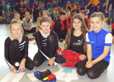 Einen etwas ungünstigen Termin hatten sich die Baunataler für ihren Langenbergpokal ausgewählt – jedenfalls für unsere Sportlerinnen und Sportler. Durch Ferienzeit und Urlaub waren die Kinder nicht ganz so fit, wie man es von ihnen gewohnt ist. Große Ausnahme: Pia Lameyer. Sobald die Halle zum Training geöffnet war, drehte sie schon ihre Runden. Beim Einfahren wirkte sie noch etwas unruhig, sobald es um die offizielle Wertung ging, zeigte sie ein tolles Programm. Ärgerlich war nur, dass sie zwischen den Übungen kurz abstieg, wodurch zwei wertvolle Punkte verloren gingen. Belohnt wurde Pia am Ende mit einer tollen neuen Bestleistung von 38,25 Punkten; damit verbesserte sie sich auf den sechsten Platz bei den Schülerinnen U11. Noch völlig übermüdet vom Urlaub klappte es bei Sophie Simon in der zweiten Programmhälfte nicht ganz so gut. Bis dahin hatte sie kaum Abzüge, selbst den schwierigen Übergang zum Lenkersitzsteiger zeigte sie mühelos. Beim Dornbeugestand freihändig rutschte sie dann ungünstig ab und stürzte. Es folgten noch drei weitere Bodenstände und so wurde am Ende auch die Zeit knapp. Die letzten beiden Übungen kamen nicht mehr in die Zeit und so musste sie sich am Ende mit 39,90 Punkten begnügen. Sophie wurde Fünfte.
