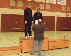 Wie bereits letzte Woche erwähnt, war der Saisonstart für die Kunstradfahrer/innen bei der Bezirksmeisterschaft in diesem Jahr wieder besonders erfolgreich, auch wenn ein paar kleine Wermutstropfen dabei sind. Jedenfalls bewiesen unsere Aktiven in Schenklengsfeld, dass sie aus der Spitze des Radsportbezirks Kassel nicht mehr wegzudenken sind. Den Anfang machte unsere jüngste Sportlerin Emma Richter. In ihrer Altersklasse U9 ging sie als haushohe Favoritin an den Start. Neben dem Titel ging es für Emma aber auch um die mögliche Teilnahme an der Hessenmeisterschaft, sodass sie sich keinen Fehler erlauben durfte. Die Siebenjährige meisterte ihr anspruchsvolles Programm mit größter Coolness und sicherte sich mit neuer Bestleistung von 40,31 Punkten und gut 24 Punkten Vorsprung neben dem Bezirksmeistertitel auch die Quali zur Hessenmeisterschaft der U11. Absoluter Wahnsinn! Für Celina Schneider war es in der Altersklasse U11 der erste „offizielle“ Wettkampf nach der Generalprobe vor heimischem Publikum in der Woche zuvor. Celina zeigte, dass die die Anweisungen der Trainerinnen gut umgesetzt hatte und beherrschte die Übungen schon wesentlich sicherer als bei der Vereinsmeisterschaft. Mit einem guten Ergebnis von 12,32 Punkten erreichte sie Platz 16. Nach einem dreiviertel Jahr Trainingspause hat Pia Lameyer wieder Spaß am Kunstradfahren gefunden. Ihr Programm klappte gut, auch Frontstand und Lenkersitz, die beim Einfahren noch etwas wackelig waren. Pia verbesserte sich mit knapper neuer Bestleistung von 19,81 Punkten um drei Plätze und belegte Rang 12. Nina Langlotz hatte trotz längerer Krankheitspause ein anspruchsvolles Programm aufgestellt, ging es doch für sie darum, die Qualifikation zur Hessenmeisterschaft nach der Nachnominierung im Vorjahr dieses Mal auf direktem Wege zu erreichen. Nina beherrschte ihre Übungen sicher – in Schenklengsfeld ließ dann aber die Kraft nach und so musste sie bei der Reitsitzhocke und der Lenkervorhebehalte das Rad verlassen. Am Ende kam Nina mit 35,53 Punkten auf den fünften Platz. Kleiner Trost: Im April gibt es die Möglichkeit zur Nachquali und da kann Nina mit aufgestockter Schwierigkeit an den Start gehen. Diese Chance gab es für Sophie Pruß nicht, weil sie bei dem Sichtungstermin verhindert ist. Folglich musste ihr Programm schon bei der Bezirksmeisterschaft klappen, damit die Quali in trockenen Tüchern ist. Im Wettkampf bewies Sophie Nervenstärke, zeigte ihr anspruchsvolles Programm mit höchster Konzentration und wurde dafür mit einer traumhaften neuen Bestleistung von 43,27 Punkten belohnt. Die erste Quali war geschafft und dazu gab es die Bronzemedaille. Bei Hanna Reichmann lief es im Training in letzter Zeit nicht ganz so gut; sicher geglaubte Übungen klappten plötzlich nicht mehr und irgendwie war der „Wurm drin“. Bei der Bezirksmeisterschaft in Schenklengsfeld bewies Hanna aber dann, dass sie zum richtigen Zeitpunkt topfit ist. Dank der hohen Schwierigkeit durfte sie sich ein paar kleine Wackler leisten und qualifizierte sich nach der Nachnominierung im Vorjahr dieses Mal auf direktem Wege mit 43,56 Punkten und Platz zwei zur Hessenmeisterschaft. In der Gruppe der Schüler U11 verteidigte René Kasper seinen Bezirksmeistertitel. Die Qualifikationsnorm hatte er bereits im Vorjahr geschafft, konnte aber bei der Hessischen verletzungsbedingt nicht teilnehmen. Leider war René trotz seines soliden Vorsprungs und guten Trainingsleistungen viel zu aufgeregt, sodass er beim Sattellenkerstand und der darauf folgenden Hocke Bodenkontakt hatte. Über das Ergebnis von 36,83 Punkten war er enttäuscht, aber die Goldmedaille und die Quali konnten ihn wenigstens etwas trösten. Auch Felix Schulze ging als Titelverteidiger bei den Schülern U13 an den Start. Trotz eines Sturzes und Zeitproblemen blieb Felix mit 35,13 Punkten knapp unter seiner Bestleistung. Für die Qualifikation zur Hessenmeisterschaft reichte es noch nicht, allerdings ist eine Nachnominierung wahrscheinlich. Felix freute sich über seinen Sieg. Im Einer Schülerinnen U13 heißt die neue Bezirksmeisterin Janina Kasper. Sie zeigte erstmals den schwierigen Übergang vom Reitsitzsteiger zum Lenkersitzsteiger. Ihre Höchstschwierigkeit meisterte sie mit Bravour, aber der Druck, sich erstmals zur Hessenmeisterschaft zu qualifizieren, lastete schwer auf ihr. Obwohl sie im Training ihre Übungen mühelos beherrschte, musste sie bei der Bezirksmeisterschaft zweimal das Rad verlassen und am Ende reichte dann die Zeit nicht aus. Auch wenn Janina mit 45,33 Punkten einen 14-Punkte-Vorsprung gegenüber der Konkurrenz herausfuhr, war sie über die verpasste Qualifikation traurig. Wie Nina wird sie zum Nachtermin mit erhöhter Schwierigkeit antreten. Nach mehreren Jahren Kunstrad-Abstinenz wollten es die „alten Damen“ vom RSC doch noch mal wissen. Beim Training für ein Schaufahren entwickelte sich die Idee, doch auch mal wieder unter den Bedingungen des neuen Reglements im Wettkampf anzutreten. Im Zweier Elite weiblich zeigten Verena Aßhauer/ Mareen Smasal, dass ihnen auch eine solche Pause nichts anhaben kann. Sie knüpften an die guten Leistungen der Vergangenheit an und verwiesen bei ihrem Comeback mit 82,35 Zählern die jüngere Konkurrenz mit fast 20 Punkten Vorsprung auf Platz zwei. Ein mehr als verdienter Titelgewinn und die Qualifikation zur Hessenmeisterschaft krönten ihren Auftritt.