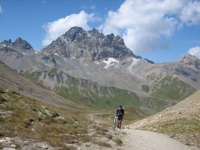 Am vierten Tag wurden auf der Abfahrt ins Vinschgau und den nadelbedeckten Waldwegen Richtung Ortlermassiv die Beine etwas geschont, um Kraft für die noch kommenden drei schweren Etappen zu sammeln. Geschlafen wurde in Trafoi mit Blick auf die vergletscherten Felshänge des Ortler.