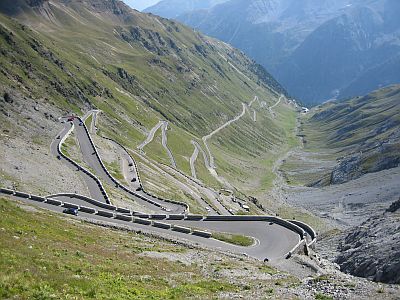 Der fünfte Tag begann an der Kehre Nummer 46 der Stilfser-Joch-Straße. Auf den Spuren des Giro d`Italia schlängelt sich die Asphaltstraße bis zur Kehre mit der Nummer 1 auf über 2.700 Meter Meereshöhe. Den Touristenrummel am Stilfser Joch verlassend ging die Fahrt weiter in grandioser Hochgebirgskulisse zur Bochetta di Forcola und von dort über den Lago di Cancano und Bormio nach Santa Catarina di Valfurva, wo die Unterkunft bezogen wurde.